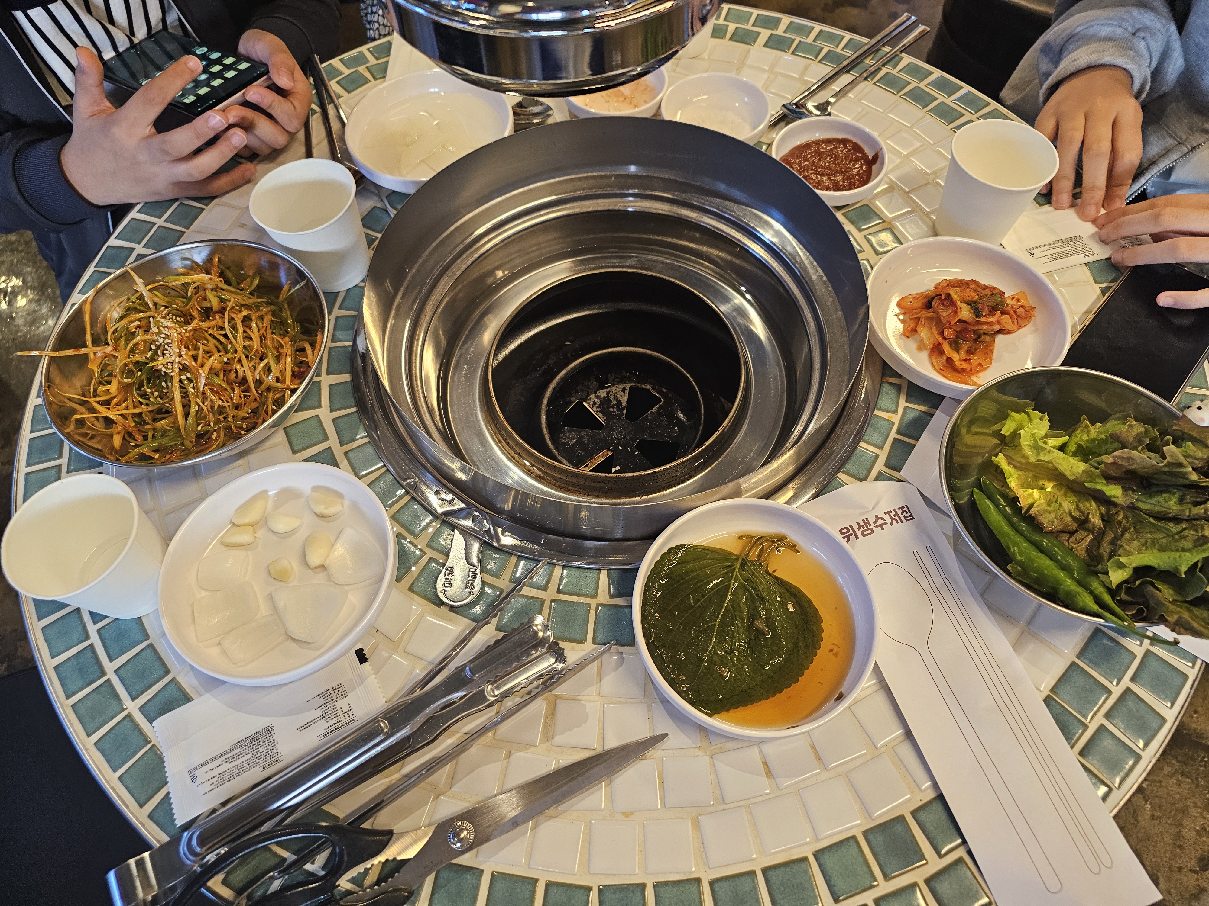 테이블이 있습니다. 기본찬이 나와서 한 장 찍어봅니다.