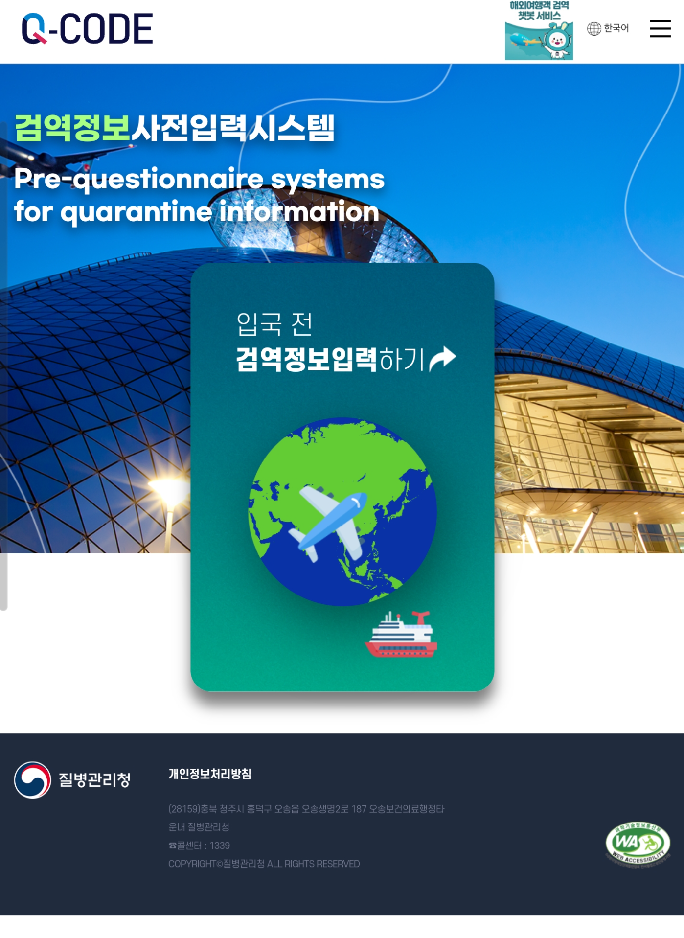 검역정보사전입력시스템 Pre-questionnaire systems for quarantine information