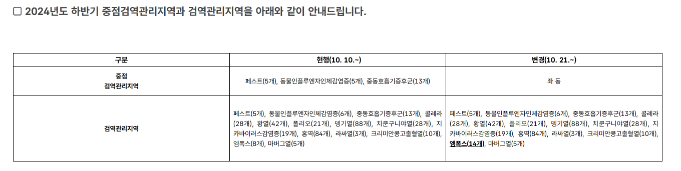 중점검역관리지역 안내
